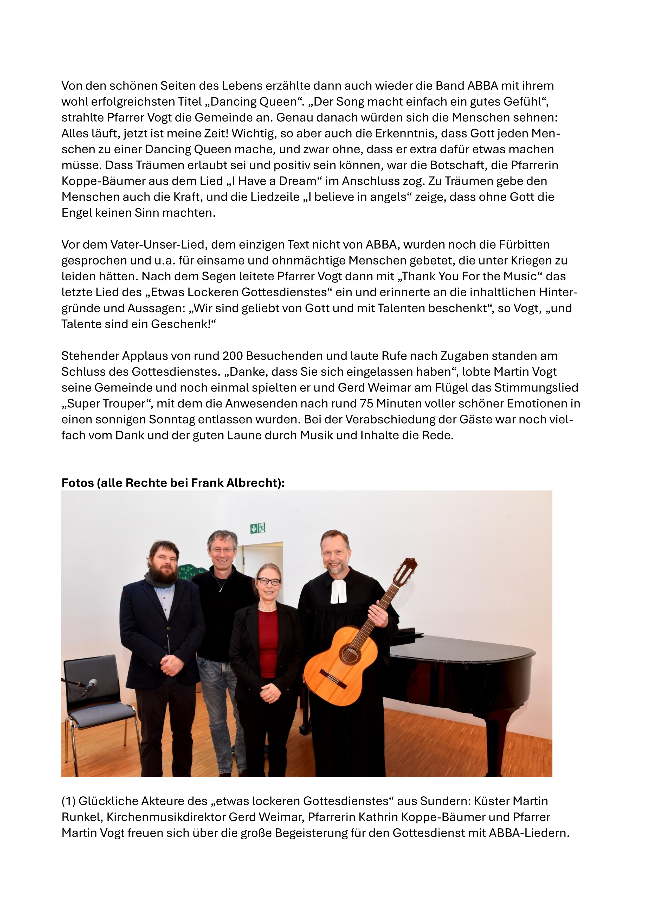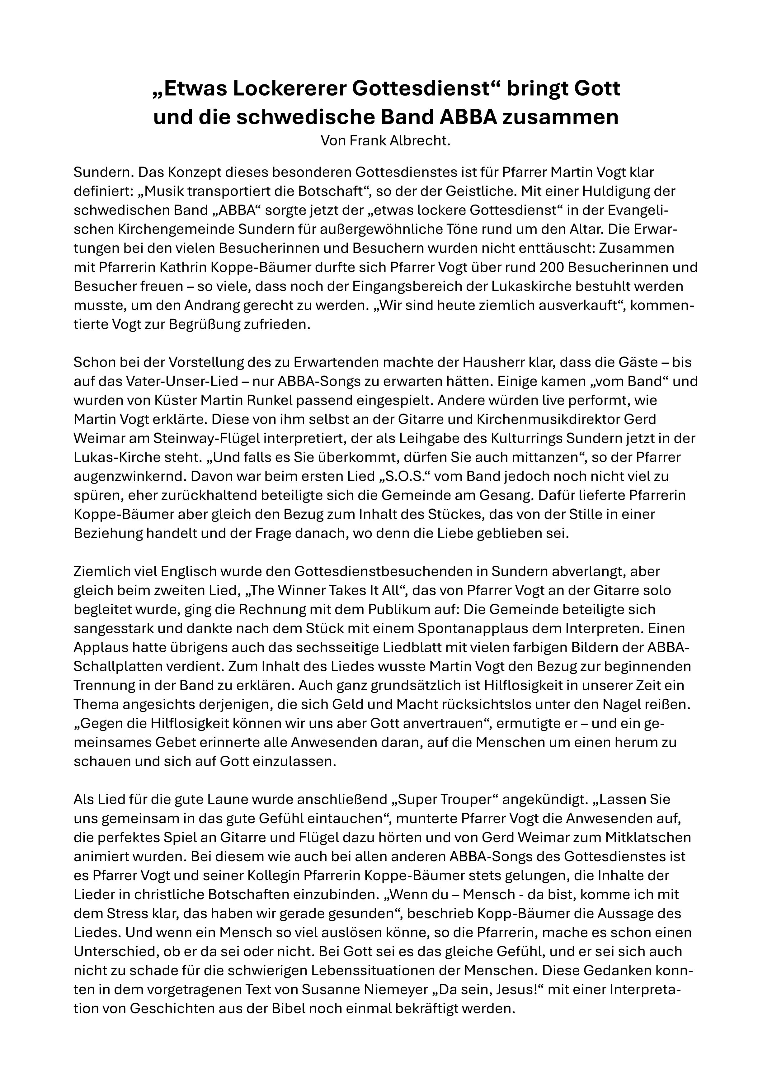 „Etwas Lockererer Gottesdienst“ bringt Gott und die schwedische Band ABBA zusammen